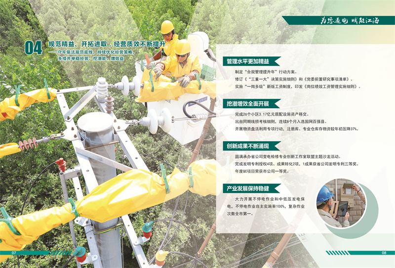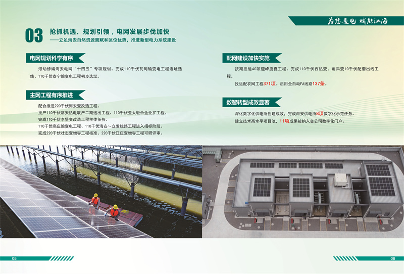 《白皮書》披露,2023年,該公司組織召開海安市迎峰度夏保供工作會議,深挖非工空調(diào)負(fù)荷調(diào)控潛力,促請政府出臺需求響應(yīng)、非工負(fù)荷調(diào)節(jié)能力建設(shè)等支持政策。堅持“杜絕增量、清除存量”原則,拆除1000千伏泰吳線下方違規(guī)大棚。滾動修編海安電網(wǎng)“十四五”專項計劃,主網(wǎng)工程有序推進(jìn)。深化數(shù)字化供電所創(chuàng)建成效,完成8項數(shù)字化示范任務(wù)。11項成果被納入省公司數(shù)字化門戶。完成發(fā)明專利授權(quán)4項、成果轉(zhuǎn)化2項,年度QC項目榮獲市公司一等獎。深化“開門接電”示范區(qū)建設(shè),全面省級以上園區(qū)全覆蓋,成立重大項目服務(wù)小組,服務(wù)萬噸冷鏈等14個省市級重大項目接電。公司員工助學(xué)殘疾兒童事跡《神秘叔叔,你是誰?》相繼被人民日報、新華社、中國青年報等中央媒體相繼轉(zhuǎn)載。