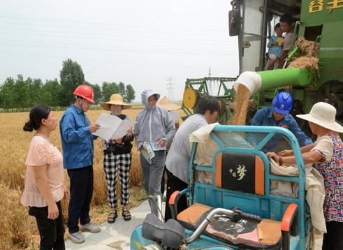 國(guó)網(wǎng)泗水縣供電公司組織服務(wù)人員走進(jìn)田間地頭,巡視供電線路設(shè)備,向正在麥?zhǔn)盏拇迕裥麄靼踩秒娭R(shí),對(duì)收割機(jī)駕駛員和運(yùn)輸秸稈的貨車司機(jī)開(kāi)展線路防外力破壞宣傳,為麥?zhǔn)展┯秒姲踩q{護(hù)航。
