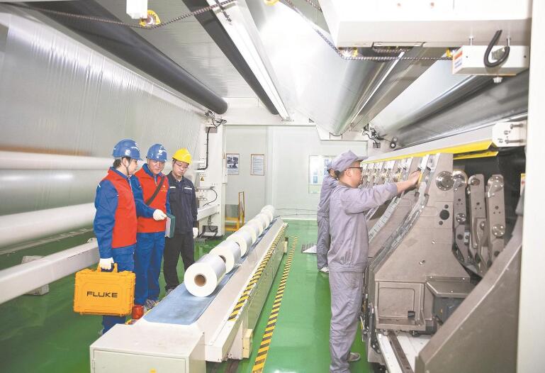 綿陽供電公司員工在四川東材科技集團股份有限公司為企業(yè)排查生產線用電安全隱患。田海 攝