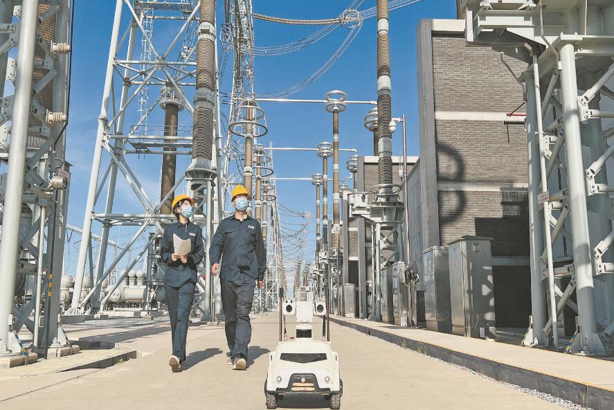 1000千伏特高壓保定變電站黨支部黨員利用智能機器人巡檢站內(nèi)設(shè)備,保障變電站安全穩(wěn)定運行。