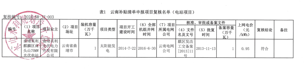 根據(jù)《財(cái)政部辦公廳關(guān)于開展可再生能源發(fā)電補(bǔ)貼項(xiàng)目清單審核有關(guān)工作的通知》(財(cái)辦建〔2020〕6號(hào))和《國(guó)家可再生能源信息管理中心關(guān)于可再生能源發(fā)電補(bǔ)貼項(xiàng)目清單申報(bào)與審核工作有關(guān)要求的公告》等文件要求,相關(guān)可再生能源發(fā)電企業(yè)對(duì)滿足條件的可再生能源發(fā)電項(xiàng)目進(jìn)行補(bǔ)貼清單申報(bào),經(jīng)云南電網(wǎng)初審、云南省能源局審核確認(rèn)、國(guó)家可再生能源信息管理中心復(fù)核?,F(xiàn)將國(guó)家可再生能源信息管理中心復(fù)核通過的云南補(bǔ)貼清單申報(bào)項(xiàng)目復(fù)核名單(電站項(xiàng)目)予以公示。