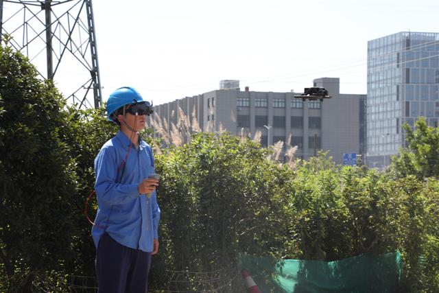 圖為工作人員應(yīng)用飛行眼鏡操控?zé)o人機(jī),對配電線路開展沉浸式巡線。新華社發(fā)(邵哲文 攝)
