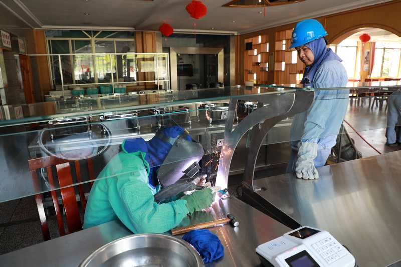 中國電力網(wǎng)訊 4月26日,天氣炎熱,而費海濤正用鋼鐵裁縫師的巧手將不銹鋼玻璃食品罩安裝完畢,使職工食堂新的炊具用品投入使用。陽宗海公司將黨史學習教育與為群眾辦實事緊密結合,以黨員為主體,引導廣大黨員廣泛學、深入悟,從黨史中汲取奮進力量,增強“我為群眾辦實事”的思想自覺和行動自覺。