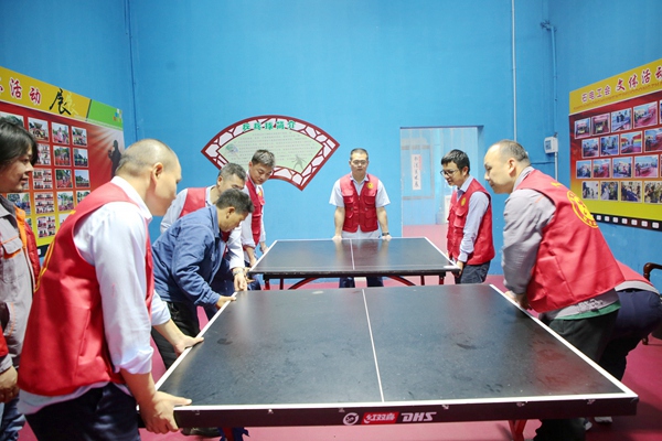 當(dāng)天上午9時(shí),該公司招募了來(lái)自三期項(xiàng)目黨支部的10余名黨員志愿者,開(kāi)展了第一次“陜電之光”志愿服務(wù)活動(dòng),為當(dāng)晚即將進(jìn)行的湖南石門五洲乒乓球俱樂(lè)部“五周年慶典暨健平源杯”乒乓球團(tuán)體賽布置場(chǎng)地。活動(dòng)中,志愿者們齊心協(xié)力將乒乓球臺(tái)、比賽圍欄以及其他比賽用具等抬至規(guī)定的位置,精心布置乒乓球團(tuán)體賽活動(dòng)場(chǎng)地,展現(xiàn)了無(wú)私奉獻(xiàn)、團(tuán)結(jié)友愛(ài)、助人為樂(lè)、積極向上的志愿風(fēng)采。
