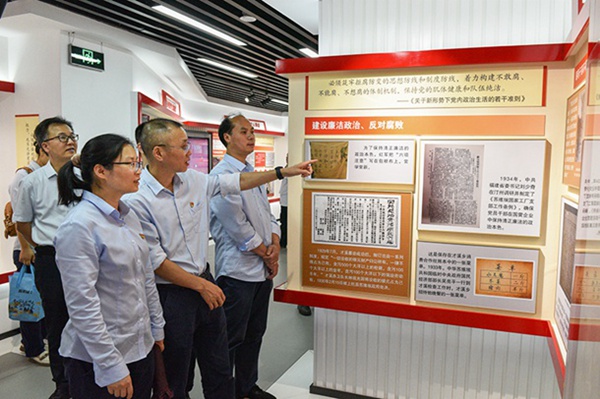 在龍巖市黨員政治生活館內(nèi),黨員干部、入黨積極分子們在機器人“講解員”的帶領(lǐng)下,依次參觀了“黨內(nèi)政治生活的百年歷程”、“黨內(nèi)政治生活的閩西蘇區(qū)探索”展區(qū),通過觀看文獻資料、歷史圖片、實物展覽、宣教視頻等了解了不同時期黨內(nèi)政治生活的探索和發(fā)展歷程,真切感受到老一輩無產(chǎn)階級革命家在艱苦的斗爭環(huán)境中不搞特權(quán)、帶頭講政治講黨性、發(fā)揚黨內(nèi)民主、接受黨和群眾監(jiān)督、持續(xù)保持清正廉潔的優(yōu)良品質(zhì)。