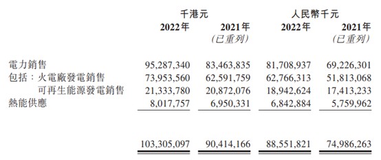 從基本面上來看,華潤(rùn)電力是業(yè)內(nèi)少有的,在2022年內(nèi)實(shí)現(xiàn)收入和利潤(rùn)均正向增長(zhǎng)的企業(yè)。年內(nèi),公司實(shí)現(xiàn)營(yíng)業(yè)收入1033.05億港元,同比增加14.3%,主要因火電不含稅平均上網(wǎng)電價(jià)同比上升20.2%,附屬電廠售電量同比增加4.1%;及附屬電廠不含稅平均售熱單價(jià)/售熱量同比增加13.8%/6.4%所驅(qū)動(dòng)。其中,2022下半年,其收入同比增長(zhǎng)11.1%,環(huán)比增長(zhǎng)4.9%至529億港元。