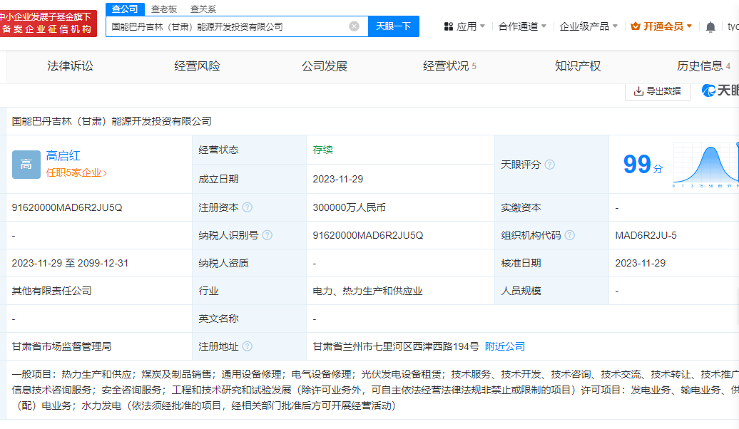就在前不久,國家能源集團還與控股子公司龍源電力共同出資30億元,成立了國能巴丹吉林能源開發(fā)投資有限公司。