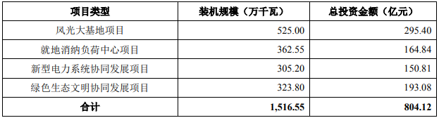 其中,風力發(fā)電、 太陽能發(fā)電項目建設擬使用募集資金約 210 億元,補充流動資金擬使用募集資金約 90 億元,公司風力發(fā)電、太陽能發(fā)電項目建設具體分布情況如下: