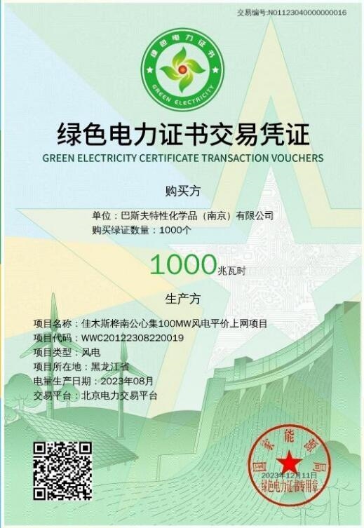 龍?jiān)措娏Ω咝七M(jìn)綠證應(yīng)領(lǐng)盡領(lǐng),全力支持集團(tuán)全產(chǎn)業(yè)100%綠電消費(fèi)工作,所屬碳資產(chǎn)公司在集團(tuán)電力營(yíng)銷公司的組織、指導(dǎo)下,積極配合推動(dòng)本次綠證核發(fā)交易,與主管機(jī)構(gòu)審核要求對(duì)標(biāo)看齊,按核發(fā)時(shí)間節(jié)點(diǎn)倒排工期,統(tǒng)籌交易方報(bào)價(jià)需求、合同簽署,最終促成樺南公心集100兆瓦風(fēng)電項(xiàng)目與德國(guó)巴斯夫特性化學(xué)品(南京)有限公司綠證劃轉(zhuǎn)交易,獲得全國(guó)首張綠色電力證書(shū)交易憑證。