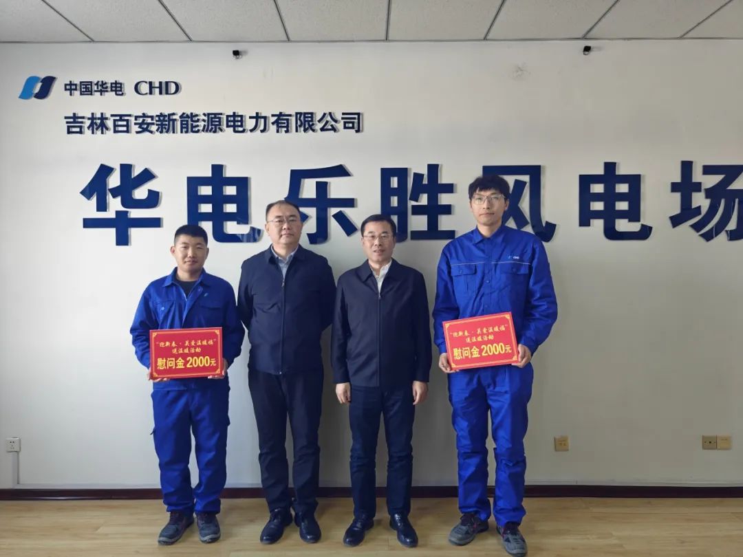 寒冬送暖,歲末傳情。1月22日,在新春佳節(jié)即將來臨之際,華電吉林公司黨委書記、執(zhí)行董事孫毅到樂勝風(fēng)場走訪慰問困難黨員及堅守崗位的生產(chǎn)一線員工,送去溫暖關(guān)懷和新春祝福,并開展節(jié)前安全檢查。公司黨委委員、副總經(jīng)理孫浩參加走訪慰問。