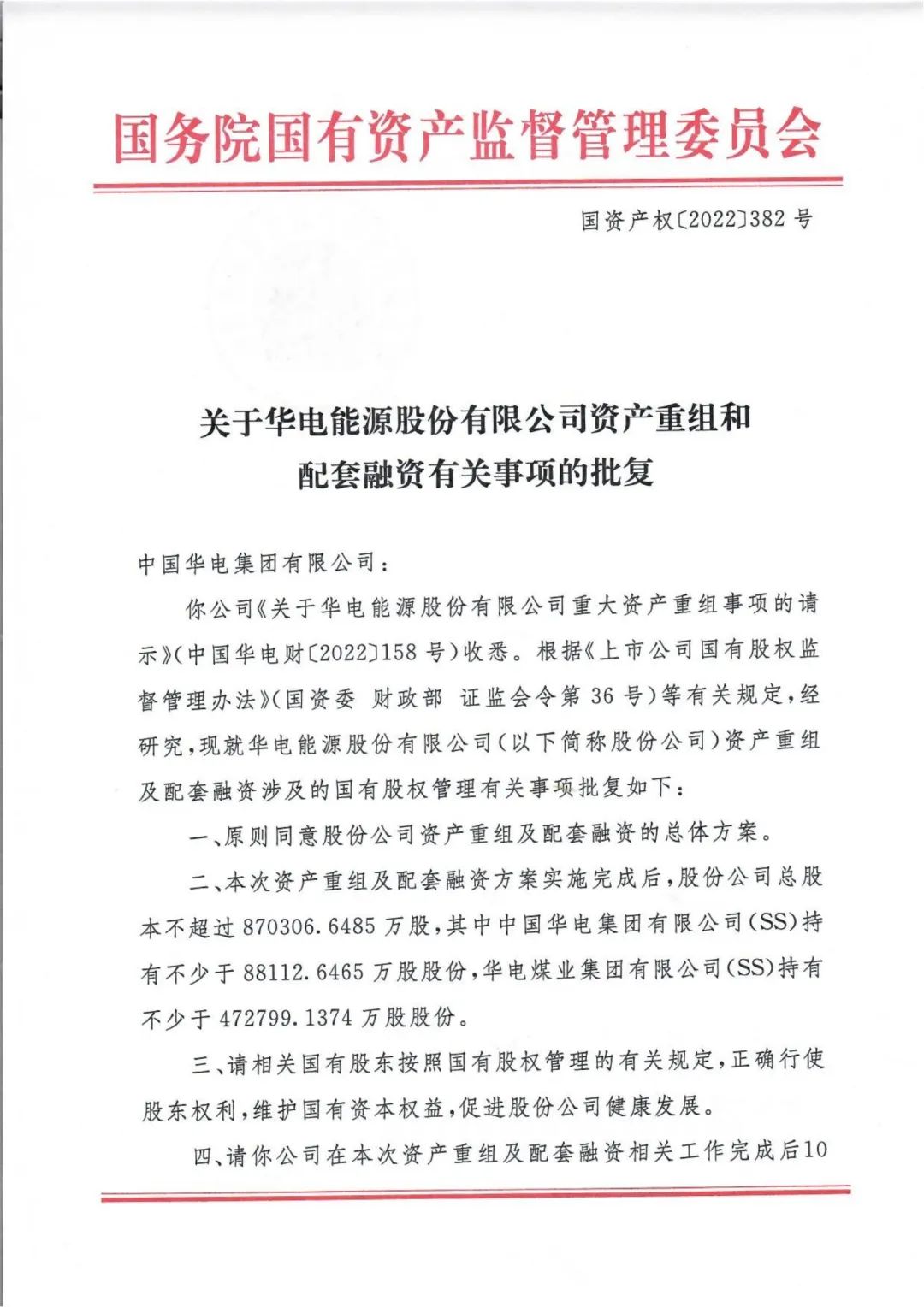 華電能源也發(fā)布公告,確認(rèn)重大資產(chǎn)重組事項(xiàng)獲得國務(wù)院國資委批復(fù)。