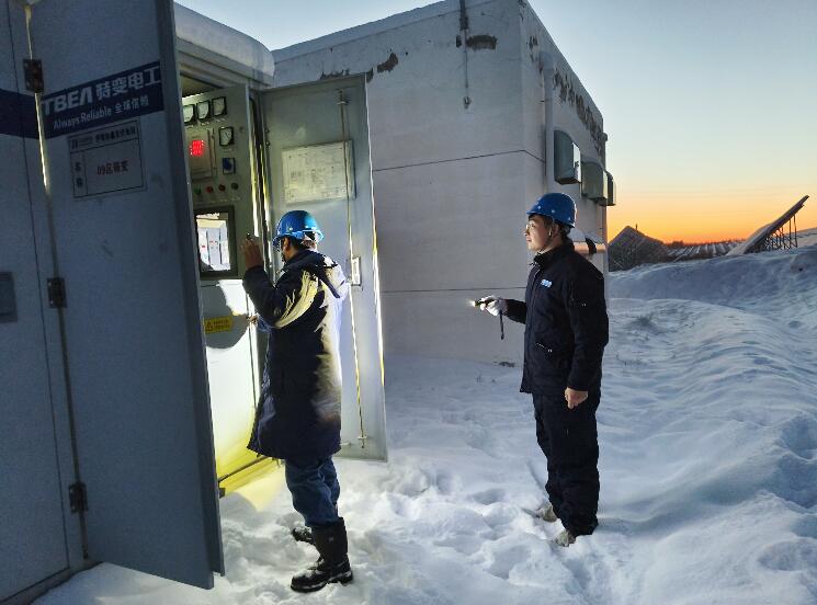 在西北部地區(qū),新疆伊犁地區(qū)日前遭遇連續(xù)降雪,華能伊犁光伏電站地處山區(qū),現(xiàn)場(chǎng)積雪最深處達(dá)50公分。場(chǎng)站立即啟動(dòng)防寒防凍應(yīng)急預(yù)案,重點(diǎn)對(duì)匯流箱、箱變、逆變器、光伏板凝凍情況等進(jìn)行仔細(xì)檢查,增加巡檢次數(shù)和動(dòng)態(tài)跟蹤;及時(shí)清除組件積雪,加強(qiáng)應(yīng)急值班管理,持續(xù)做好運(yùn)行監(jiān)控分析和重點(diǎn)設(shè)備專項(xiàng)檢查工作,確保電力生產(chǎn)設(shè)備始終處于最佳運(yùn)行狀態(tài),保障關(guān)鍵時(shí)刻設(shè)備安全穩(wěn)定供電。