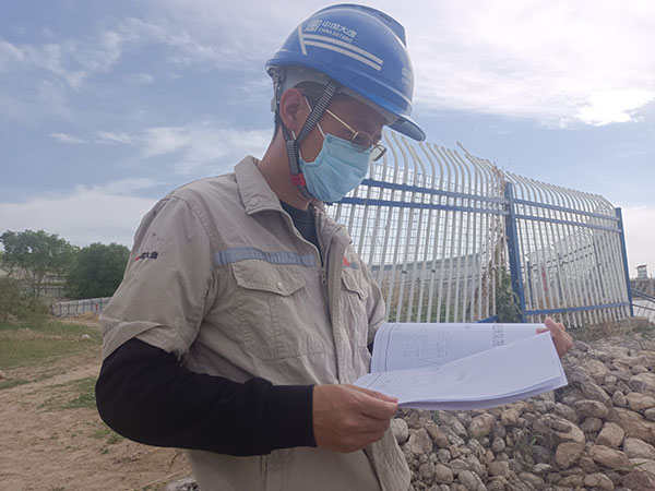 水工人員對(duì)照圖紙檢測壩體情況