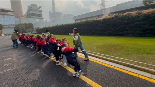 隨著研學(xué)活動接近尾聲,南熱電廠的叔叔們與小朋友們展開了一場趣味拔河比賽。比賽現(xiàn)場,氣氛熱烈而歡快,小朋友們喊著稚嫩卻響亮的口號,小臉憋得通紅,奮力往后拉拽。南熱電廠的叔叔們也不敢有絲毫懈怠,他們巧妙地控制著力道,既給予孩子們對抗的體驗(yàn),又確保比賽在安全有序的氛圍中進(jìn)行。老師和其他工作人員則組成了熱情的啦啦隊,加油聲、助威聲此起彼伏,歡聲笑語回蕩在整個場地,大家共同度過了一段美好的童趣時光。