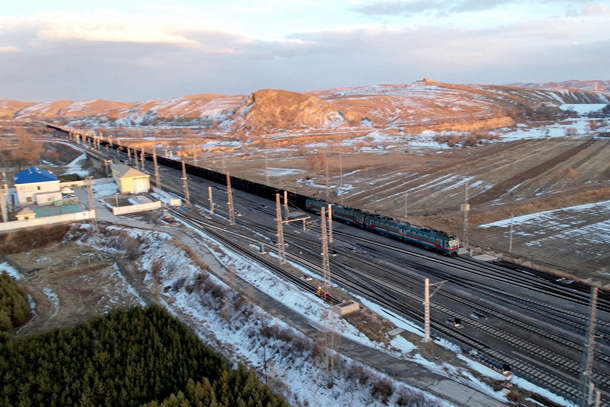 圖為滿載煤炭的列車行駛通過大準線九蘇木站