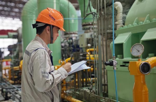 廣投北海電廠運行值班員檢查設(shè)備運行情況。廣投北海電廠供圖