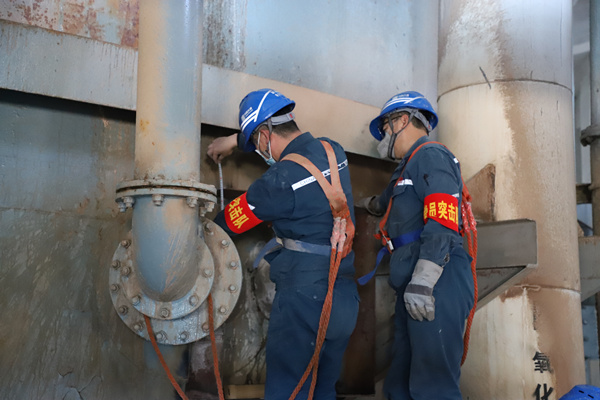 一個(gè)黨支部就是一座堡壘,一個(gè)黨員就是一面旗幟,疫情防控嚴(yán)峻形勢下,灰硫車間黨支部戰(zhàn)斗堡壘在助力安全生產(chǎn)中迸發(fā)出強(qiáng)大力量。3月16日1點(diǎn)40,吸收塔漿液漏泄,影響脫硫系統(tǒng)安全運(yùn)行,存在環(huán)保參數(shù)超標(biāo)風(fēng)險(xiǎn),轉(zhuǎn)機(jī)班在接到缺陷后,立即組織全員上陣,黨員廖振海,李亞洲、楊得志在檢修中率先垂范,爭做表率,全身上下被漿液淋濕浸透也絕不后退半步,利用自制的木頭塞經(jīng)過5次嘗試臨時(shí)封堵住漏點(diǎn),并用6mm鐵板自行焊接制作密封盒,內(nèi)部澆灌水泥,徹底消除了漏泄的隱患,確保了環(huán)保設(shè)備安全運(yùn)行?;伊蜍囬g在對灰場2號(hào)除灰管道巡視檢查中發(fā)現(xiàn)灰管道漏泄,為了避免發(fā)生環(huán)保事件,機(jī)械班迅速組織人員搶修。工作中,黨員王雷、吳侃,工作組成員夏延鵬沖鋒在前,進(jìn)入到冰冷的水中用卡具封堵漏點(diǎn),由于搶修及時(shí)避免了環(huán)保事件的發(fā)生,保證了我廠除灰渣系統(tǒng)安全可靠運(yùn)行。灰硫車間黨支部在特殊時(shí)期,積極響應(yīng)廠黨委的號(hào)召,嚴(yán)格執(zhí)行我廠各項(xiàng)工作部署,黨員帶頭沖鋒一線,堅(jiān)決守住人身、設(shè)備、環(huán)保底線,體現(xiàn)“硬核”擔(dān)當(dāng),用行動(dòng)展示基層黨支部昂揚(yáng)向上的精神面貌。