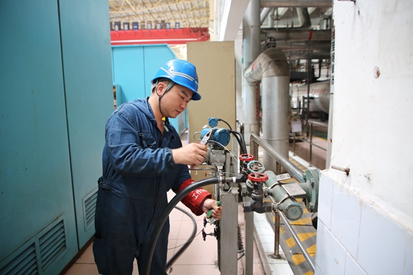 熱控三班彭郴梅正在進行2號機精處理就地熱控設備檢修