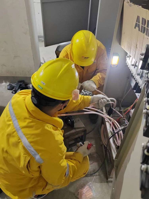 當(dāng)一切方案和材料都就位后,又一個問題出現(xiàn)了,那就是人手。工程部電氣專業(yè)僅有兩位同志,可是即要工作不打折扣地全部完成,又要是以最短的工期結(jié)束戰(zhàn)斗,這就成了不可能的任務(wù)。然而,協(xié)同作戰(zhàn)從來都是華潤人的優(yōu)良傳統(tǒng)。接到需要支持的信號后,華潤電力徐州公司維修部派來了四名專業(yè)技術(shù)人員,熱力公司的生產(chǎn)部也抽調(diào)了電氣班組的人員參與其中。