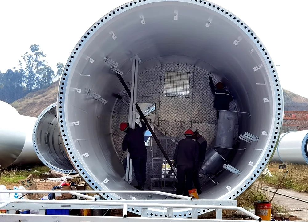 在云南藍(lán)天重工有限公司,工人們正在進(jìn)行風(fēng)力發(fā)電機(jī)塔筒內(nèi)附件安裝。“我們今年新增了一條生產(chǎn)線,并于7月正式投產(chǎn),可滿足單段100噸塔筒生產(chǎn)要求。今年,除了華寧,我們還接到了曲靖、文山等地的訂單。”該公司技術(shù)副總經(jīng)理周鵬翔說,“現(xiàn)在全國風(fēng)電產(chǎn)業(yè)趨勢向好,帶來了良好的市場前景,也帶來了更大的市場競爭。接下來,我們將充分發(fā)揮公司生產(chǎn)規(guī)模大、輻射面積廣的優(yōu)勢,不斷提升產(chǎn)品競爭力,逐步擴(kuò)大生產(chǎn)規(guī)模。”
