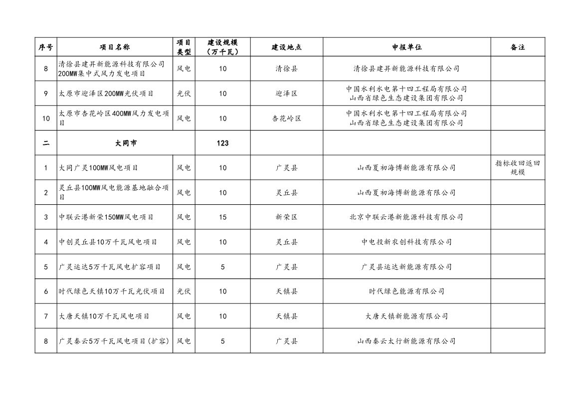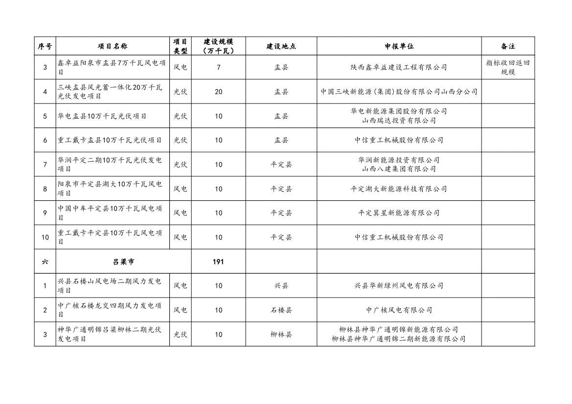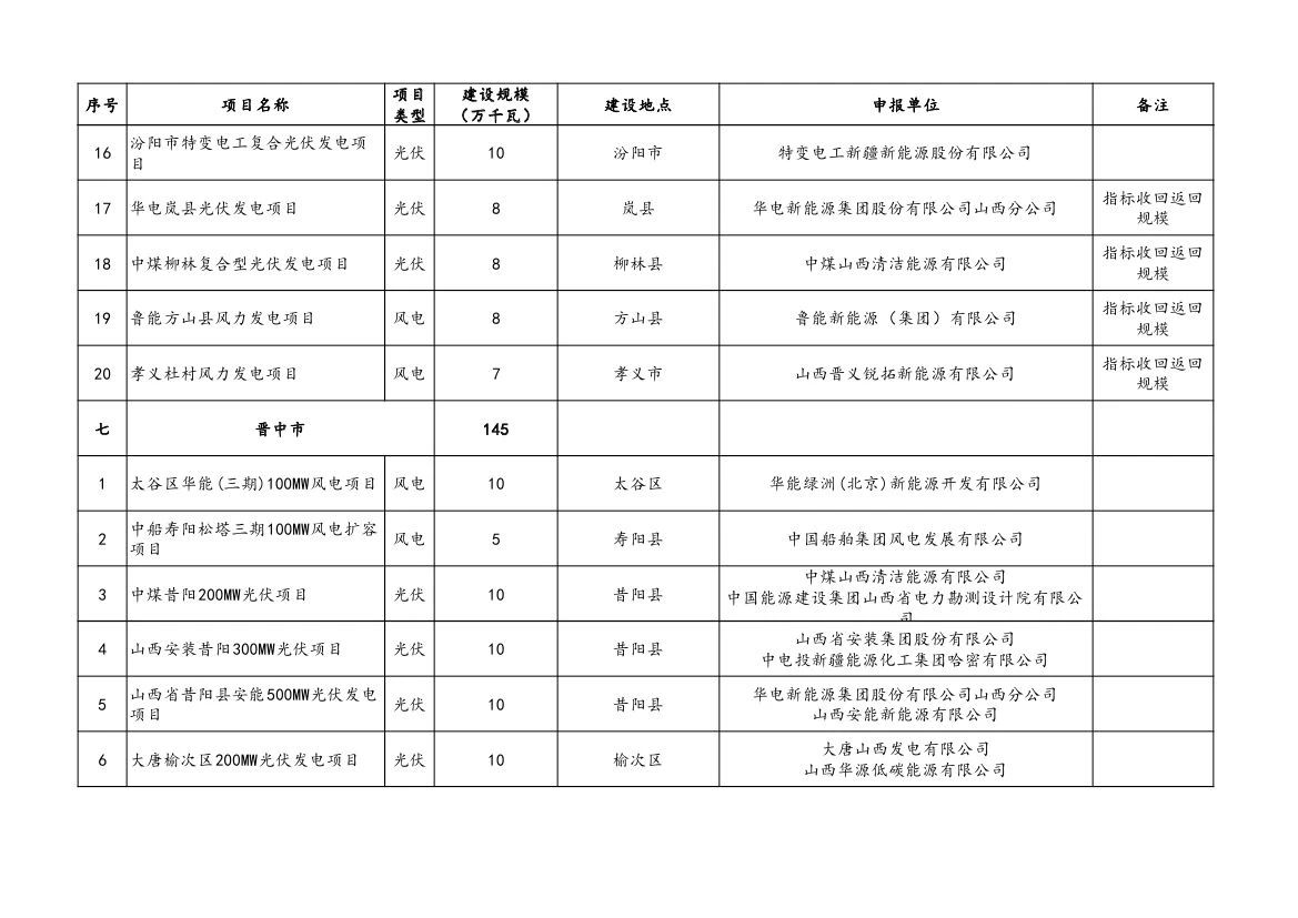 附件:山西省2023年風電、光伏發(fā)電保障性并網(wǎng)項目清單