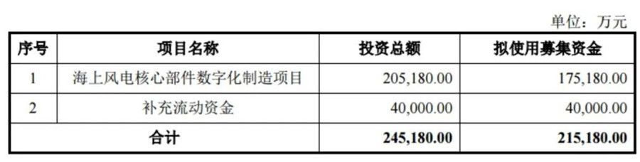12月12日,金雷科技股份公司(簡稱“金雷股份”)發(fā)布《向特定對象發(fā)行股票募集說明書》(修訂稿),擬募集資金21.52億元,用于海上風(fēng)電核心部件數(shù)字化制造項目(17.52億元)和補充流動資金(4億元)。