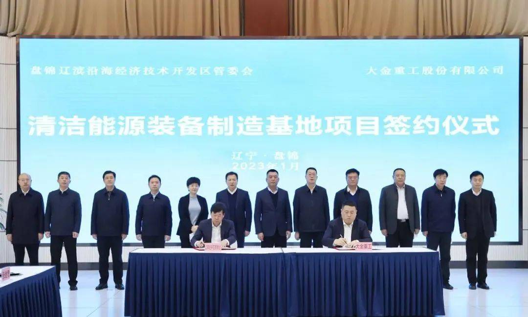1月7日,大金重工股份有限公司與盤(pán)錦市遼濱沿海經(jīng)開(kāi)區(qū)管委會(huì)舉行清潔能源裝備制造基地項(xiàng)目簽約儀式。