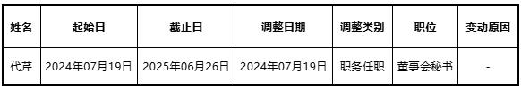 中節(jié)能風(fēng)力發(fā)電股份有限公司于2024年07月20日發(fā)布董事會決議顯示,代芹聘任為公司董事會秘書,詳情如下:
