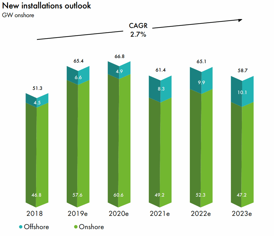 由于非洲,中東,拉丁美洲和東南亞的新興市場(chǎng)以及海上風(fēng)電的競(jìng)爭(zhēng)力日益提高,預(yù)計(jì)到2023年新增產(chǎn)能將超過(guò)300吉瓦。