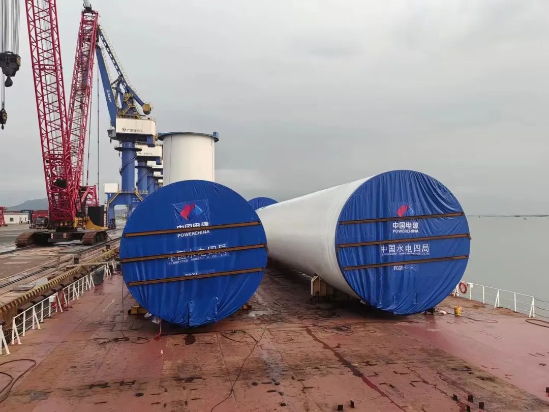 該項(xiàng)目裝機(jī)容量高達(dá)289MW,計(jì)劃安裝34臺(tái)8.5MW風(fēng)機(jī)。陽(yáng)江公司承擔(dān)其中14臺(tái)塔筒的加工制造任務(wù),工期緊任務(wù)重。這些塔筒不僅體積龐大,僅單套重量(不含電氣柜)達(dá)到了約510噸,且結(jié)構(gòu)復(fù)雜,共4段,總長(zhǎng)度111米,最大直徑7.5米,最小直徑5.3米。