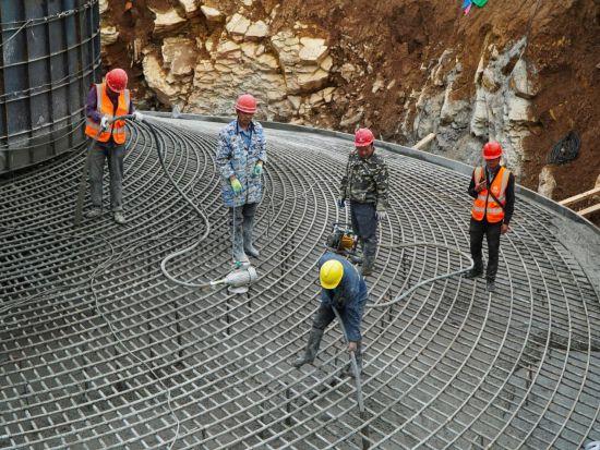 圖為工人們正在進行大體積混凝土澆筑。巫山縣委宣傳部供圖
