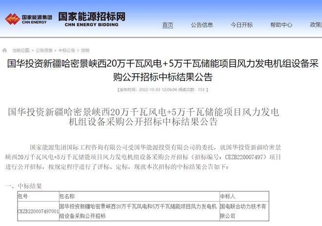 近日,國華投資新疆哈密景峽西20萬千瓦風(fēng)電+5萬千瓦儲(chǔ)能項(xiàng)目風(fēng)力發(fā)電機(jī)組設(shè)備采購公開招標(biāo)中標(biāo)結(jié)果公告,國電聯(lián)合動(dòng)力中標(biāo),中標(biāo)價(jià)43580萬元,折合單價(jià)2179元/kW。
