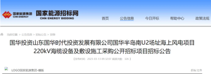 招標(biāo)范圍為國(guó)家能源集團(tuán)國(guó)華半島南U2海上風(fēng)電項(xiàng)目2回(兩期各1回)220kV海纜設(shè)備采購(gòu)及敷設(shè)施工,包括但不限于:(具體詳見第五章技術(shù)文件)