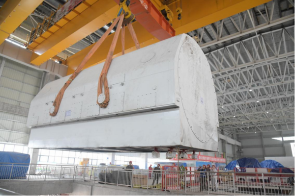 2月12日,在各級管理人員及安全人員的全程監(jiān)護下,經(jīng)過1個小時的吊裝作業(yè),#2汽輪發(fā)電機定子順利吊裝就位。