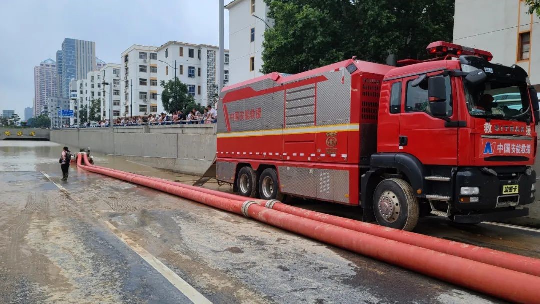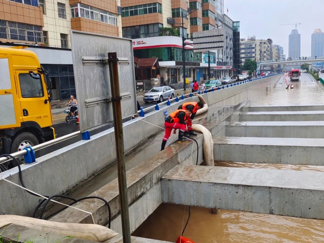 鄭州方向,安能三局派出25人,4臺龍吸水,2臺一體化泵車,在京廣北路隧道由北往南展開抽排水。針對鄭州站西廣場積水嚴(yán)重情況,中國安能三局采取“人歇機(jī)不停、兩班連續(xù)戰(zhàn)”的戰(zhàn)法,截止22日12時00分,完成抽排水26萬方,水位下降約3.5米,已經(jīng)大幅度下降,西北側(cè)隧道道路面露出約60米。因下半夜抽排現(xiàn)場連續(xù)強(qiáng)降雨,抽排水仍在緊張工作中。在抽排水現(xiàn)場,全體抽排水指戰(zhàn)員白天冒高溫、晚上頂濕冷,沒有一人叫苦叫累,他們團(tuán)結(jié)協(xié)作,有序有力奮戰(zhàn)在抽排水一線。