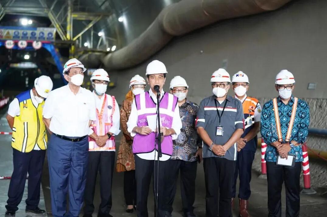 印尼總統(tǒng)佐科來到中國電建承建的雅萬高鐵2號(hào)隧道施工現(xiàn)場(chǎng)