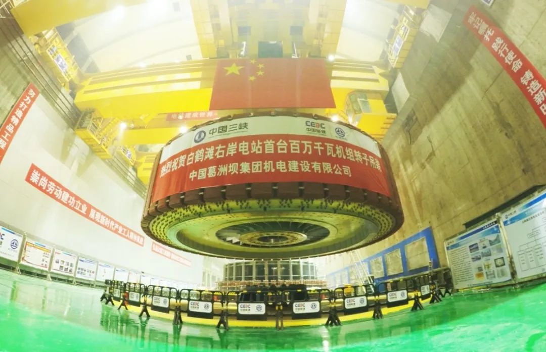 白鶴灘右岸電站首臺百萬千瓦機組轉(zhuǎn)子吊裝