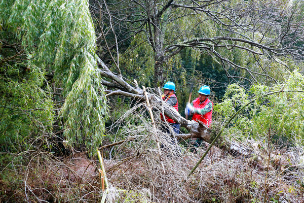 中國(guó)電力網(wǎng)訊 “123…加油!123…加油!大家注意安全,控制好繩索方向,千萬(wàn)不要讓樹壓在線上……”12月15日,在10千伏坪溪Ⅱ線坪嚴(yán)支線湖竹坪次支,國(guó)網(wǎng)樂安縣供電公司共產(chǎn)黨員服務(wù)隊(duì)隊(duì)員正在清理覆冰線路通道外的樹木,保障低溫冰凍天氣電網(wǎng)安全穩(wěn)定運(yùn)行。
