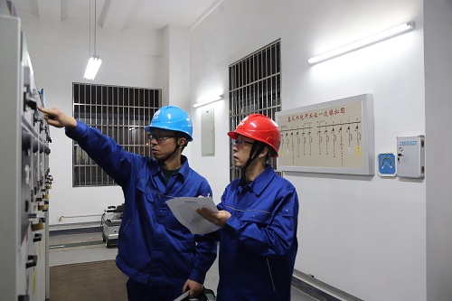 夜間特巡的電力員工首先來到位于小學(xué)內(nèi)的惠豐書院開關(guān)站進(jìn)行巡檢,近期氣溫下降校園內(nèi)用電量增大,保障校園用電穩(wěn)定也顯得尤為重要。隨后兩位電力員工認(rèn)真查看了配電屏上所有儀器指示盤上的電壓是否正常、電流是否超出變壓器上輸出的標(biāo)準(zhǔn)值的數(shù)據(jù),室內(nèi)配電設(shè)備是否存在問題,經(jīng)過仔細(xì)核查,本開關(guān)站都符合供電標(biāo)準(zhǔn)要求數(shù)據(jù)。