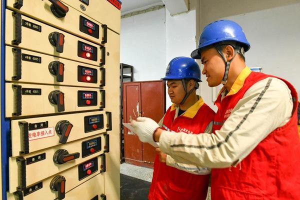 國(guó)網(wǎng)重慶江津供電公司青年志愿者對(duì)學(xué)校配電房進(jìn)行特巡。王化全攝