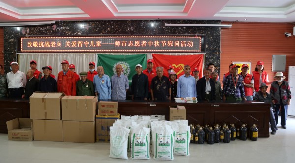 活動(dòng)期間,志愿者們還和老兵們、留守兒童們溫馨合影,并將第二師天泰電力志愿者協(xié)會(huì)申請(qǐng)中國(guó)人權(quán)基金會(huì)1.57萬(wàn)元資金購(gòu)置的月餅、面粉、清油,圖書(shū)、文具用品送給抗戰(zhàn)老兵及留守兒童們,讓這些曾經(jīng)為國(guó)家獨(dú)立,民族解放浴血奮戰(zhàn)的抗戰(zhàn)老兵,以及留守兒童們感受到來(lái)自社會(huì)的關(guān)愛(ài)。