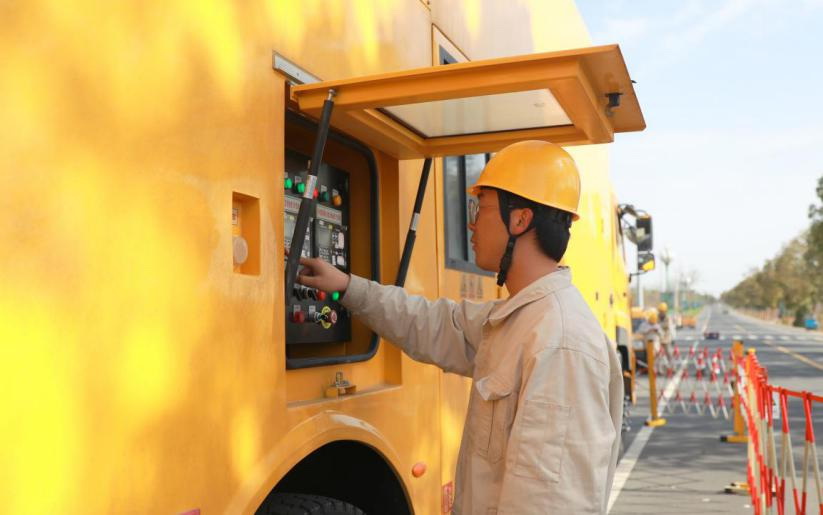 “相較傳統(tǒng)的配網(wǎng)計劃施工需要停電的情況,通過中、低壓發(fā)電車結合的形式,可以最大程度減少停電檢修的影響,保障周邊重要用戶在配網(wǎng)施工期間的正常用電。”溧陽供電運檢服務分中心工作人員項大衛(wèi)介紹道。