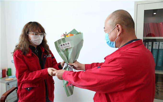 隨后,嚴(yán)書記到各位女職工辦公室為她們送上精心準(zhǔn)備的鮮花與書籍。送禮物結(jié)束后,女職工們通過微信群一起分享大家在疫情期間看到的關(guān)于女性的優(yōu)秀感人事跡以及大家在疫情期間學(xué)到的生活小技巧交流心得,在鮮花的相伴之下,書香氣息更加濃郁。在欣賞鮮花分享事跡的同時,女職工們不忘為祖國加油,為這場疫情阻擊戰(zhàn)加油,她們紛紛寫下自己的祝福語,在初春時節(jié),祝福祖國戰(zhàn)勝疫情,萬物復(fù)蘇,欣欣向榮。