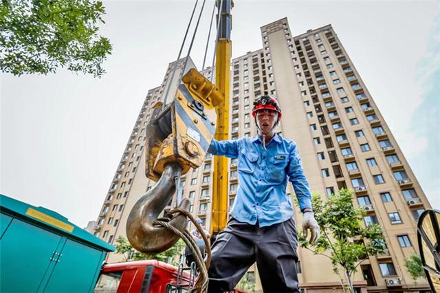 國網(wǎng)北京海淀供電公司員工敷設(shè)電纜,完成居民小區(qū)箱式變壓器送電。