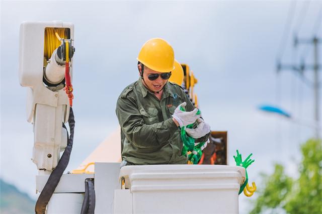 國網(wǎng)四川綿陽供電公司員工高溫下開展10千伏線路帶電作業(yè)。