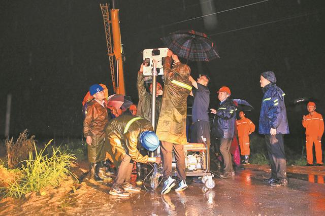 運(yùn)輸材料、組裝燈泡、打樁架線、爬桿送電……突擊隊(duì)員們克服雜草叢生、滿是泥濘的不利工作條件,于7月1日6時(shí)“點(diǎn)亮”江心鄉(xiāng)堤壩。據(jù)統(tǒng)計(jì),突擊隊(duì)員們共計(jì)安裝防雨戶外燈300余盞,敷設(shè)照明臨時(shí)線路約12千米。