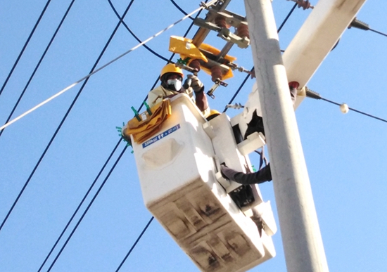 中國(guó)電力網(wǎng)訊 1月7日,濰坊壽光地區(qū)氣溫驟降至零下19攝氏度,國(guó)網(wǎng)壽光市供電公司帶電作業(yè)人員在10千伏金華線19號(hào)桿,為臺(tái)頭鎮(zhèn)某防水企業(yè)進(jìn)行更換隔離刀閘作業(yè),及時(shí)消除線路缺陷,保障企業(yè)客戶寒潮期間安全可靠用電。