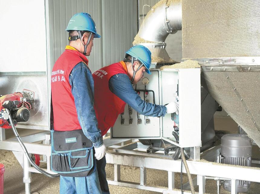 6月1日凌晨,在鄠邑區(qū)渭豐街道真守村,臺(tái)區(qū)經(jīng)理常小勇和同事為一臺(tái)27千瓦烘干機(jī)通上了電。這臺(tái)烘干機(jī)隨即開啟24小時(shí)連續(xù)作業(yè)模式,開足馬力烘干真守村農(nóng)業(yè)合作社剛剛收割的小麥,解決此前連續(xù)陰雨天造成的曬糧難問(wèn)題。