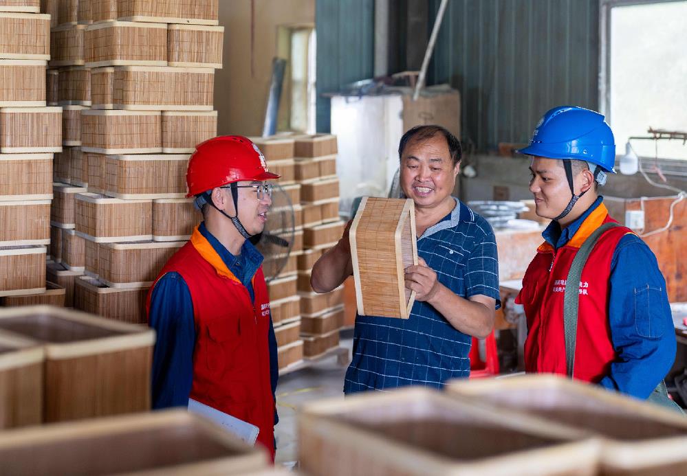 隨著竹制品加工產(chǎn)業(yè)鏈的不斷拓展與深化,竹家具、竹材料等深加工產(chǎn)業(yè)相繼興起。盧村鄉(xiāng)建平陶氏竹籃編織廠憑借著“非遺”皖南竹編技藝,很快在當(dāng)?shù)刂癞a(chǎn)品發(fā)展中脫穎而出。“我們的產(chǎn)品銷(xiāo)量年近20萬(wàn)個(gè),遠(yuǎn)銷(xiāo)韓國(guó)、日本,現(xiàn)在通過(guò)電商平臺(tái),我們的銷(xiāo)路更廣了。”近日,為保障企業(yè)可靠用電,有效清除電氣火災(zāi)等安全問(wèn)題,國(guó)網(wǎng)廣德市供電公司組織皖美共產(chǎn)黨員服務(wù)隊(duì)深入盧村鄉(xiāng)建平陶氏竹籃編織廠,進(jìn)行全面的用電安全檢查,負(fù)責(zé)人陶公安一邊介紹生產(chǎn)用電情況,一邊積極配合檢查,自信和喜悅溢于言表。