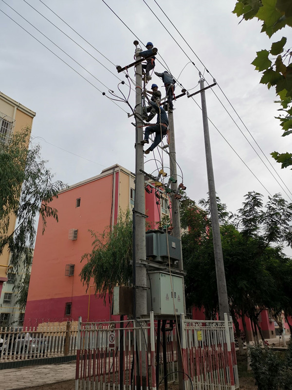 10KV配網(wǎng)線路老化,連隊(duì)危房改造房屋拆除后,進(jìn)戶線凌亂,對(duì)地安全距離不夠,電線桿根堿化嚴(yán)重。存在安全隱患。本次升級(jí)改造更換為相應(yīng)電壓等級(jí)的絕緣導(dǎo)線,15m電線桿設(shè)計(jì),絕緣子全部換新,將現(xiàn)有單回路改造為雙回路。屬地現(xiàn)場(chǎng)負(fù)責(zé)人運(yùn)檢隊(duì)長(zhǎng)劉朋舉和運(yùn)檢隊(duì)全隊(duì)人員分片跟施工隊(duì)進(jìn)現(xiàn)場(chǎng),及時(shí)檢查、督促,對(duì)進(jìn)度實(shí)時(shí)糾偏,隨時(shí)解決問(wèn)題和提出改進(jìn)意見(jiàn)。緊抓施工質(zhì)量和進(jìn)度、安全。施工停電前一天通知用戶,重要用戶提前兩天通知到位。所安全員王勝利負(fù)責(zé)施工現(xiàn)場(chǎng)安全監(jiān)督,對(duì)施工人員持證上崗、安全防護(hù)用具、安全措施等開(kāi)展現(xiàn)場(chǎng)監(jiān)督。與團(tuán)農(nóng)發(fā)辦、施工隊(duì)積極開(kāi)展對(duì)接工作,發(fā)揮屬地管理作用。